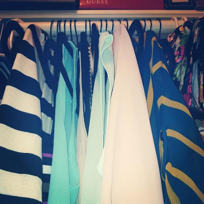 It has been such a productive and exciting week. I'm slowly packing up my room which turned out looking like a boutique. Here are a few photos from my parts of my room I wanted to share. I'm thrilled knowing I get to start this new beginning! It's been such an awesome feeling to get rid of TONS of items in my room I no longer use! It's such a relief knowing I am FINALLY able to get rid of things!Before I was NEVER able to get rid of EVERYTHING I would always use "Maybe I'll use it one day" or "It's so pretty I just CAN'T get rid of this" or "This was way too expensive I need to keep it" or "Maybe this could be my weekend shirt?" NO MORE. I'm finally telling myself If I haven't worn it in the last couple of months it no longer needs to be in my closet. PLUS, I always tell myself now the more I get rid of the MORE I GET TO SHOP and that usually works just fine. I want to get rid/donate/give away a lot of my things that I can live without. I want a fresh new start with everything. It feels amazing to know all the stuff I'm going to give away to family/friends/donate etc. I never really realized just HOW MUCH clothes I have. Yes, I do love to shop and I love to have options but I didn't realize it was to the extreme. Oops! Luckily I will have PLENTY of new space for all my clothes, I can't wait. I literally can't even sleep at night because my mind is consumed with home decor ideas. I have more than 3 visions of how I want my office/closet area and it needs to go down to ONE so I can really focus but it's not as easy as I thought when I have a million things I want to do :) I can't wait to share with you all my ideas, tips, decorations, DIY's, everything and anything! My room looks like I did laundry 6 times, went shopping a week straight, shoe shopping, purse shopping and then came in and threw everything on the floor; yes a HUGE mess. Boxes, huge shopping bags full of items I'm packing, a pile of shoes I don't want, a pile of clothes I don't want & I still need to go through all my makeup & accessories. I'm loving the organization that is taking place though, I'm actually enjoying this process; cleaning, organizing, getting rid of things, lots of boxes all over the place etc etc. It's actually a calm feeling for me because I thought I was going to feel overwhelmed with my room since I have a billion things - but not at all ! Wooohoo!